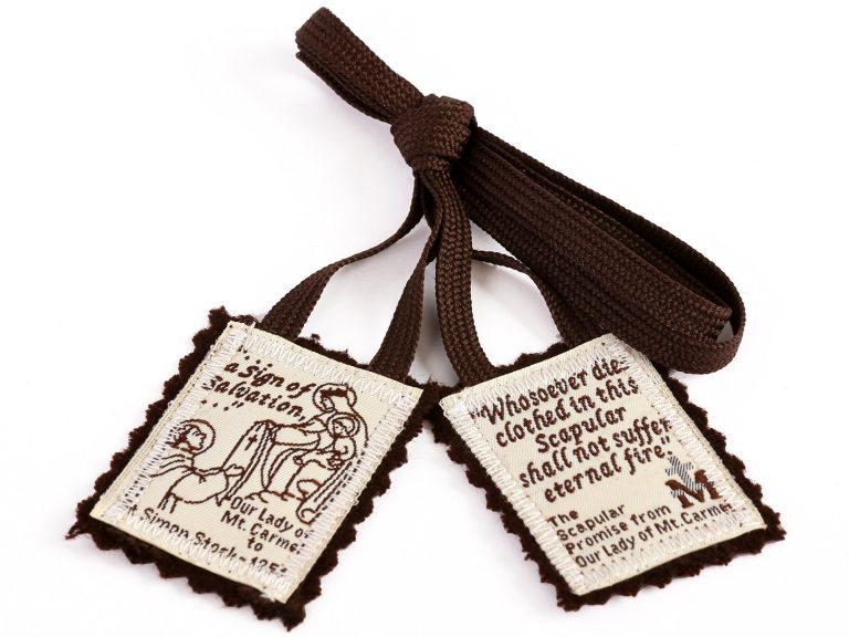In the year 1251, in the town of Aylesford in England, Our Lady appeared to St. Simon Stock, a Carmelite Monk. She handed him a brown woollen scapular and said, “This shall be a privilege for you and all Carmelites, that anyone who dies wearing this habit shall not suffer eternal fire.” In time, the Church extended this privilege to all the laity who are willing to be invested in the Brown Scapular of the Carmelites and who perpetually wear it. St. Simon Stock received the scapular from Mary as a special sign of her protection for the Carmelite order, which was then struggling.